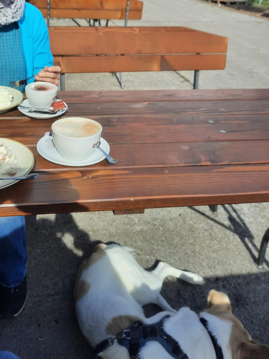 Wir treffen uns in einem kleinen Café oder Restaurant, um dort gemeinsam Ruhe zu üben, auch in Anwesenheit anderer Hunde und umherlaufender Menschen.